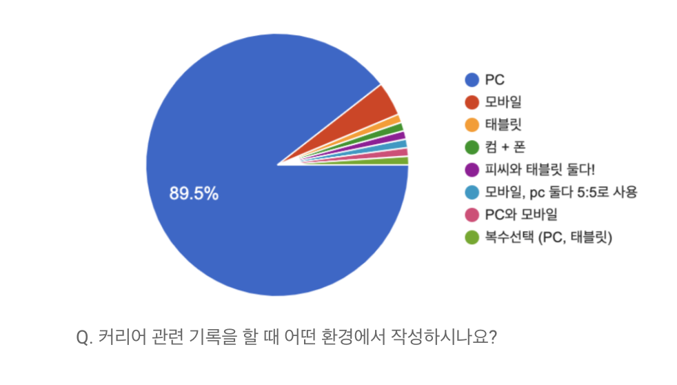 예상한 바와 마찬가지로 약 90%의 사용자들이 커리어 기록 시에는 PC를 사용한다고 응답해주었다.