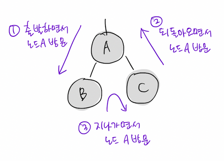 - 중위 순회(Inorder): 왼쪽 자식 → 노드 방문 → 오른쪽 자식
